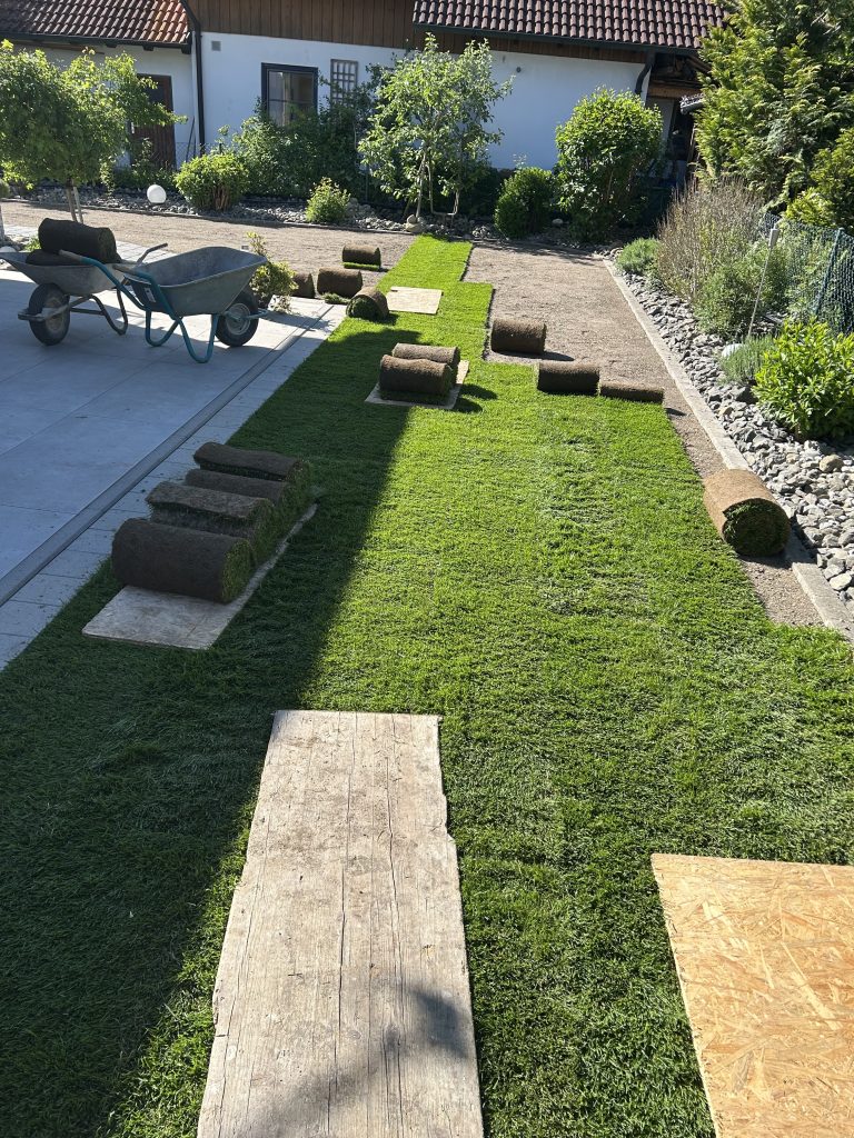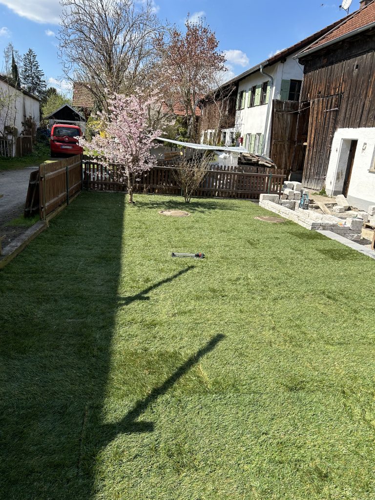 Folgend einige Eindrücke meiner Galabau-Baustellen mit Minibagger, Hebebühne, Rollrasen und Pflasterarbeiten und Vieles mehr …
